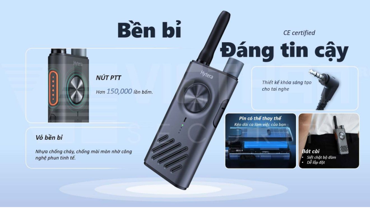 5️⃣ Bền bỉ bất chấp va đập: Đừng để vẻ ngoài lịch lãm đánh lừa, Hytera S1 đạt chuẩn quân đội MIL-STD-810 H và chống bụi nước IP54. Máy vẫn vận hành hoàn hảo ngay cả khi vô tình bị rơi rớt hoặc làm việc dưới trời mưa nhẹ.