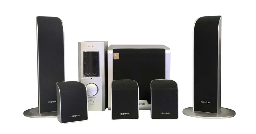 Bộ loa Microlab gồm các loa vệ tinh, 1 loa siêu trầm 1 bộ khuếch đại âm thanh, và một điều khiển từ xa. Bộ loa khá "hầm hồ" nhưng lại sở hữu những đường nét hài hòa, sắc nét giúp bạn dễ dàng trang trí trên bàn. Với tông màu bạc sang trọng bạn có thể dùng nó để tran trí trên bàn, treo trên tường để căn phòng bạn thêm phần sống động.