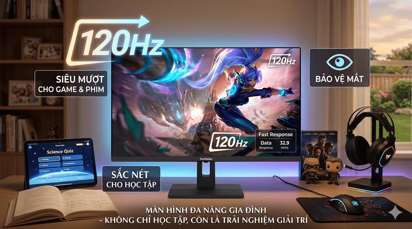 So với màn hình 60Hz thông thường, 120Hz giúp: