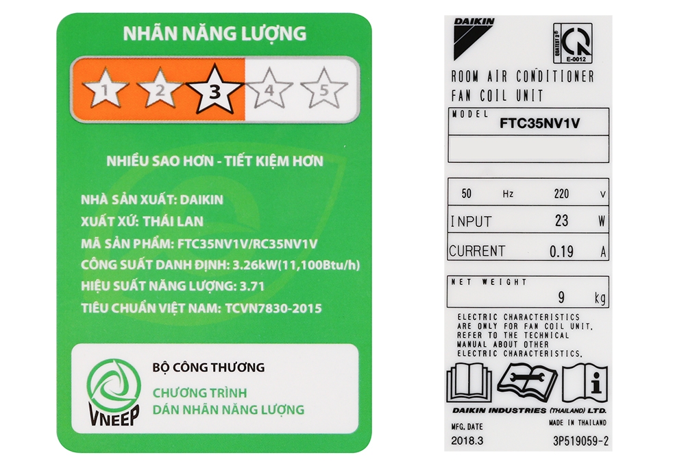 Nhãn năng lượng tiết kiệm điện:3 sao (Hiệu suất năng lượng 3.79)