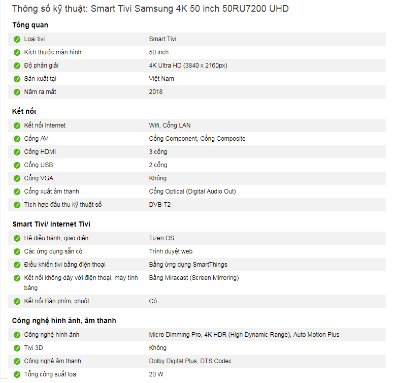 Thông tin: Smart Tivi Samsung 4K 50 inch 50RU7200 UHD