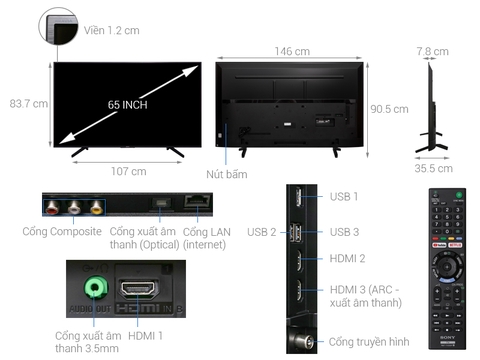 | Thông số kỹ thuật chi tiết Smart Tivi Sony 4K 65 inch KD-65X7000F |