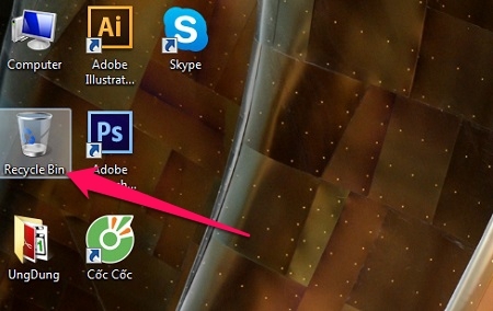 Bước 1: Chọn Recycle Bin xuất hiện trên màn hình máy tính.