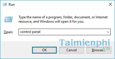 Bước 1: Truy cập vào Control Panel của Windows 10 bằng cách nhấn tổ hợp phím Windows + R để mở hộp thoại Run và gõ control panel rồi nhấn OK hoặc Enter.