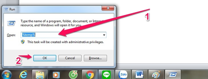Bước 2: Màn hình Run xuất hiện, gõ %temp%, rồi bấm OK.